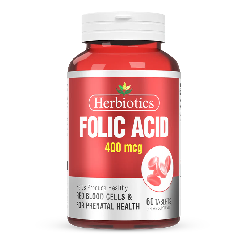 - Herbiotic’s folic acid 400 mcg supplements help to reduce the risk of miscarriage.